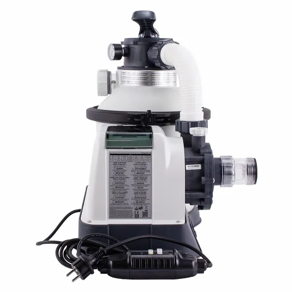 Deze zandfilterpomp bedien je via een timer. Zo kun je de pomp gewoon aan laten staan. Je stelt naar wens een dagdeel in, van bijvoorbeeld 8 uur, waarop de pomp het zwemwater door het filtervat pompt. Dit gebeurt vervolgens telkens automatisch tussen de ingestelde tijden. De pomp wordt verder geleverd met omvormer naar 12 Volt, wat veilig is voor zwembaden. Aan de pomp zit standaard een beveiligde RCD stekker, die automatisch afslaat bij te hoge spanning. Zodra je de pomp gekoppeld hebt met je zwembad, hoef je deze maar in te pluggen, de timer in te stellen, en de Intex zandfilterpomp doet de rest.